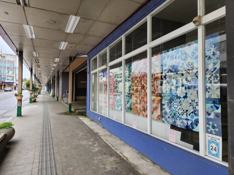 写真は前回展の様子です。十日町市街地の各店舗がキルト展示の会場となっているのが、本キルト展の魅力。
