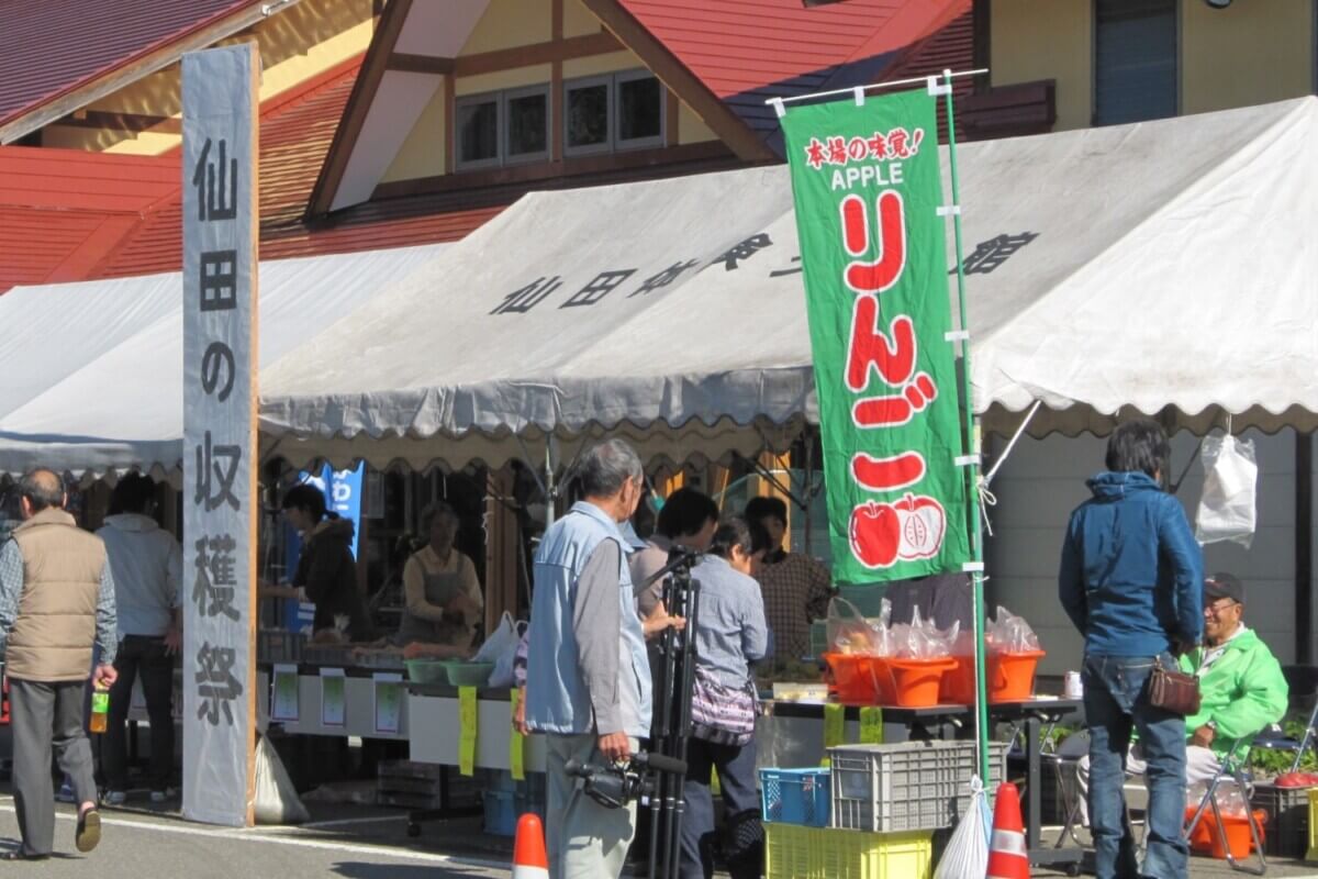 赤谷十二社の大ケヤキから車で2分、道の駅 瀬替えの郷せんだでは、今週末10月27日(日)「仙田の収穫祭」が開催されます!秋野菜の販売や屋台グルメにチンドン屋さんが登場♪ぜひお立ち寄りください。