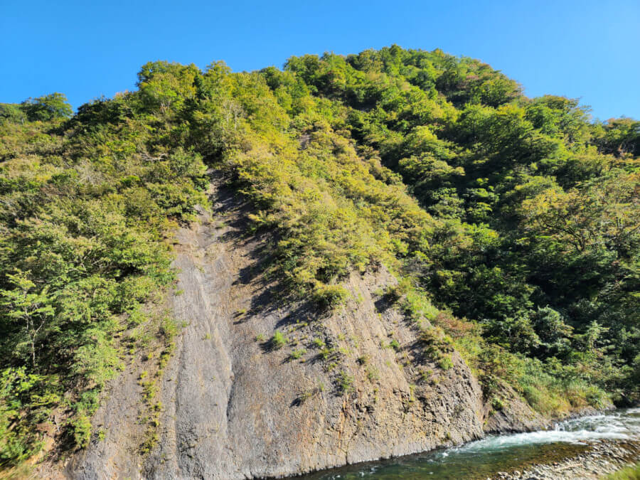 清津峡の紅葉は、2025年10月24日現在、木々がほんの少し黄色く色づいてきました。