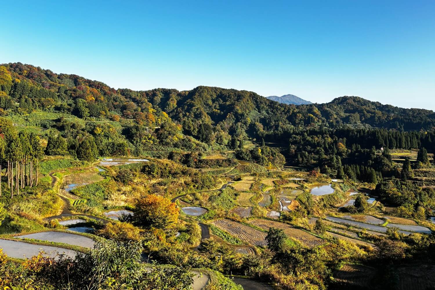 山の色づきと棚田の水鏡【新潟県十日町市松代】