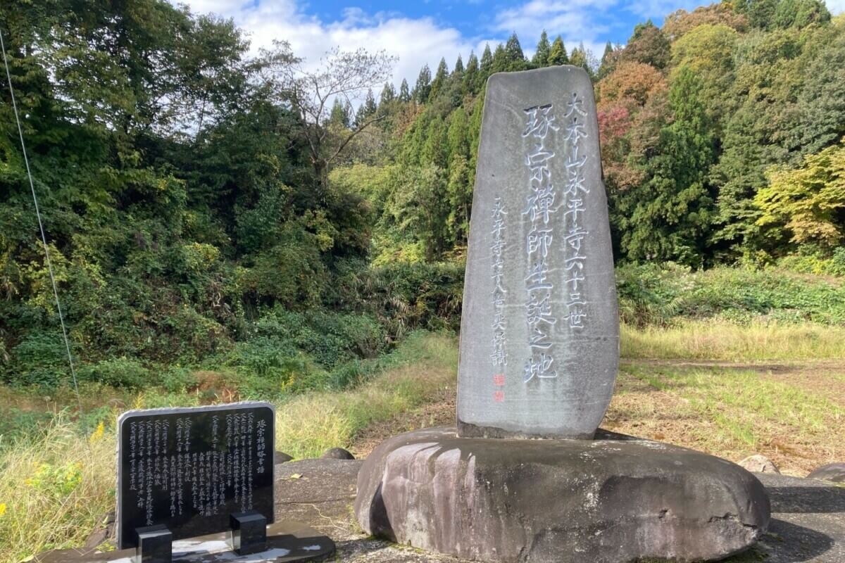 大ケヤキから戻る途中、数百メートル離れた国道沿いに「啄宗禅師生誕之地」と記された石碑が建っています。