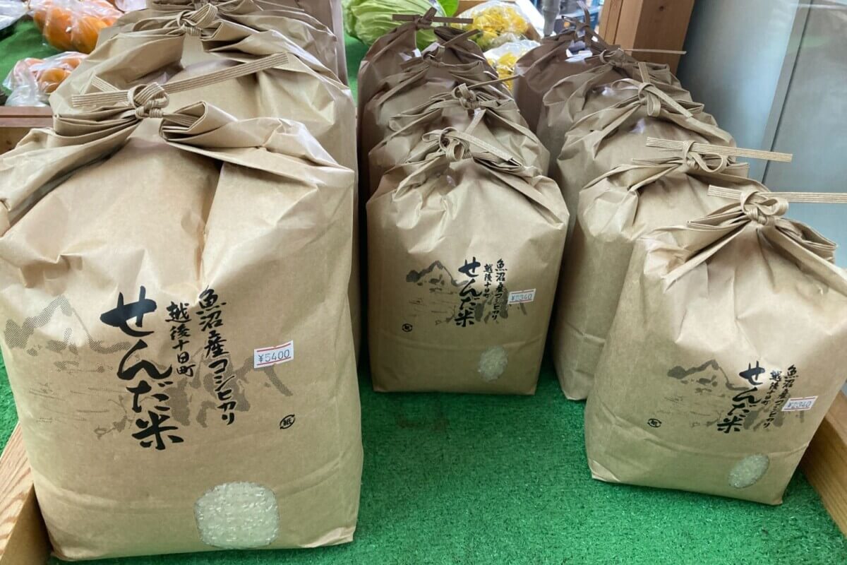 大ケヤキから車で2分、国道252号沿いにある道の駅「瀬替えの郷せんだ」では、令和7年度産の新米が販売されていました。せんだ産の魚沼コシヒカリです!