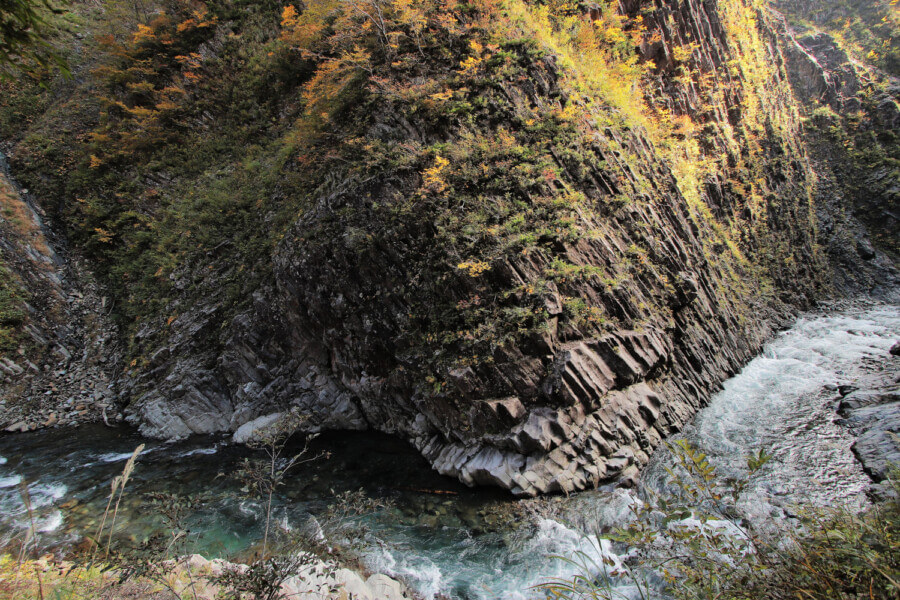 清津峡という名のとおり一帯が峡谷となっているため、秋~冬は日が差している時間が短くなります。