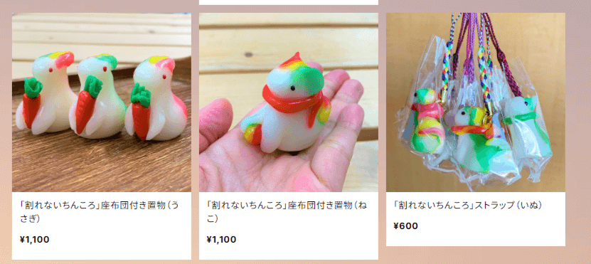 どうしても遠方で節季市には行けない、この時期には足を運べないけどチンコロが気になる…!そんな方には、ヒビ割れしない樹脂製のチンコロが販売されています。