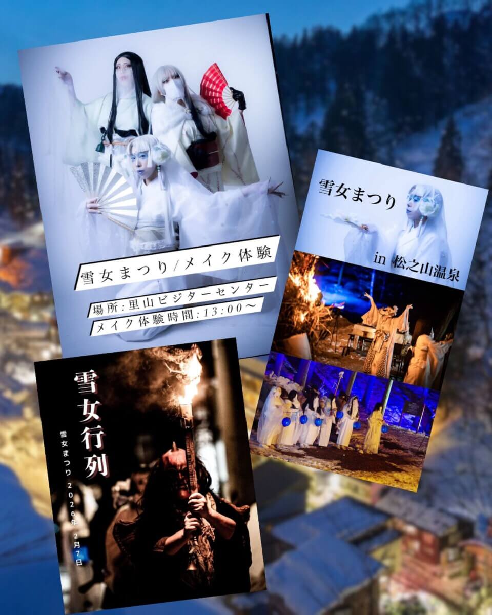福島県でこれまで7回開催され、テレビ・新聞・NHKでも話題となった「雪女まつり」が十日町・松之山温泉で初開催。十日町に伝わる雪女伝承になぞらえ、いったいどんな雪女たちが集まるのか。
