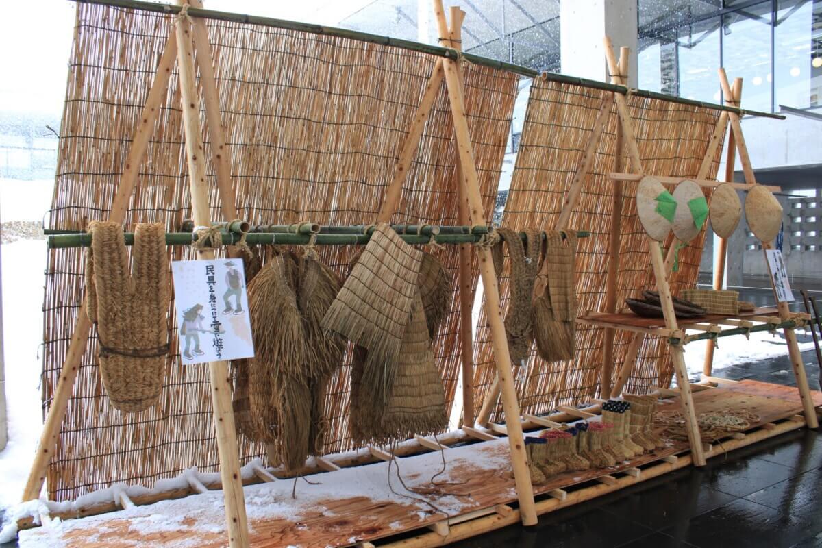 昔ながらの冬の民具を身に着けて雪と遊ぶこともできます。