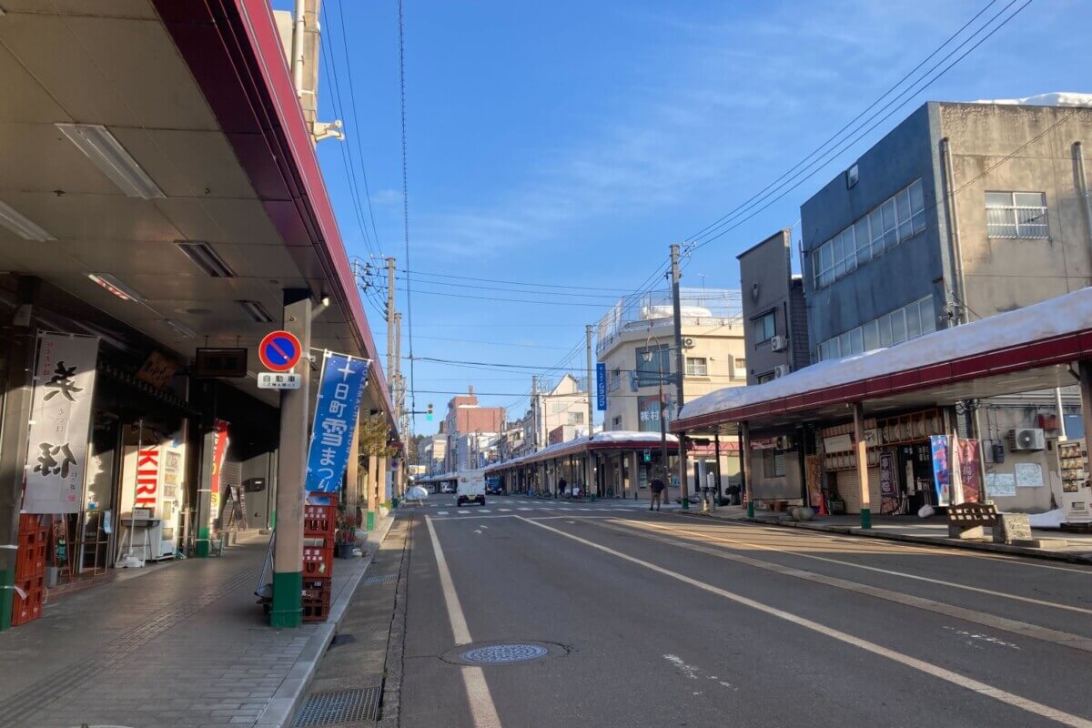 駅通り(東口側)の様子です。駅通りと高田町のコモ通り、本町1丁目~5丁目まで歩行者用アーケードがあるので、雨や雪が降っても快適。商店街を巡る街歩きもおすすめです。