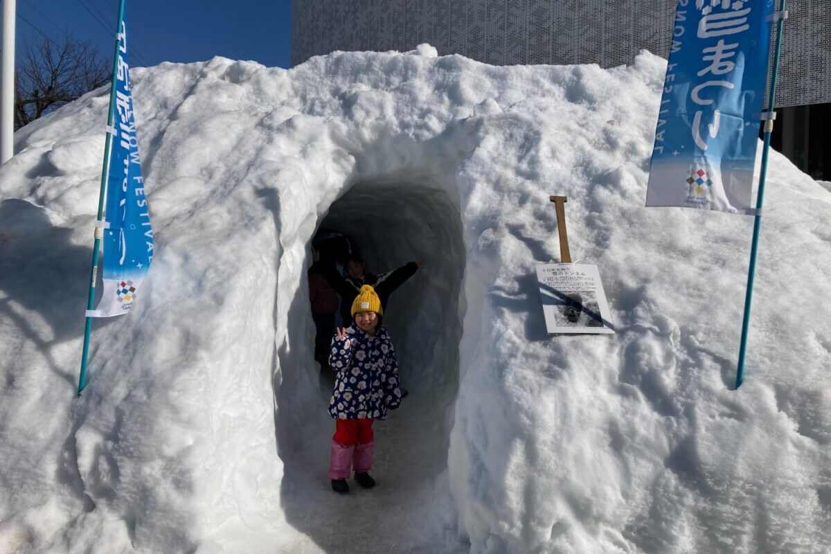 TOPPAKUパークに手掘りの雪のトンネルが出現!少しカーブや狭いところもあって楽しい~♪