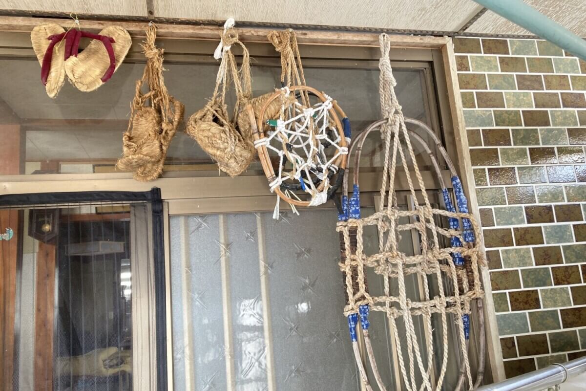 「かんじき」や「すかり」といった雪の上を歩くときに使う昔ながらの道具を発見!