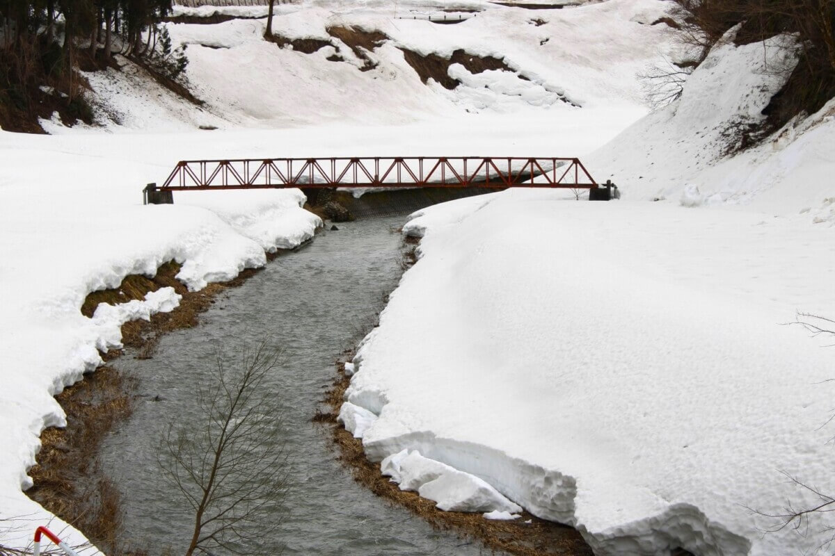 道中の飛渡川の景色。雪どけがどんどん進んでいます。