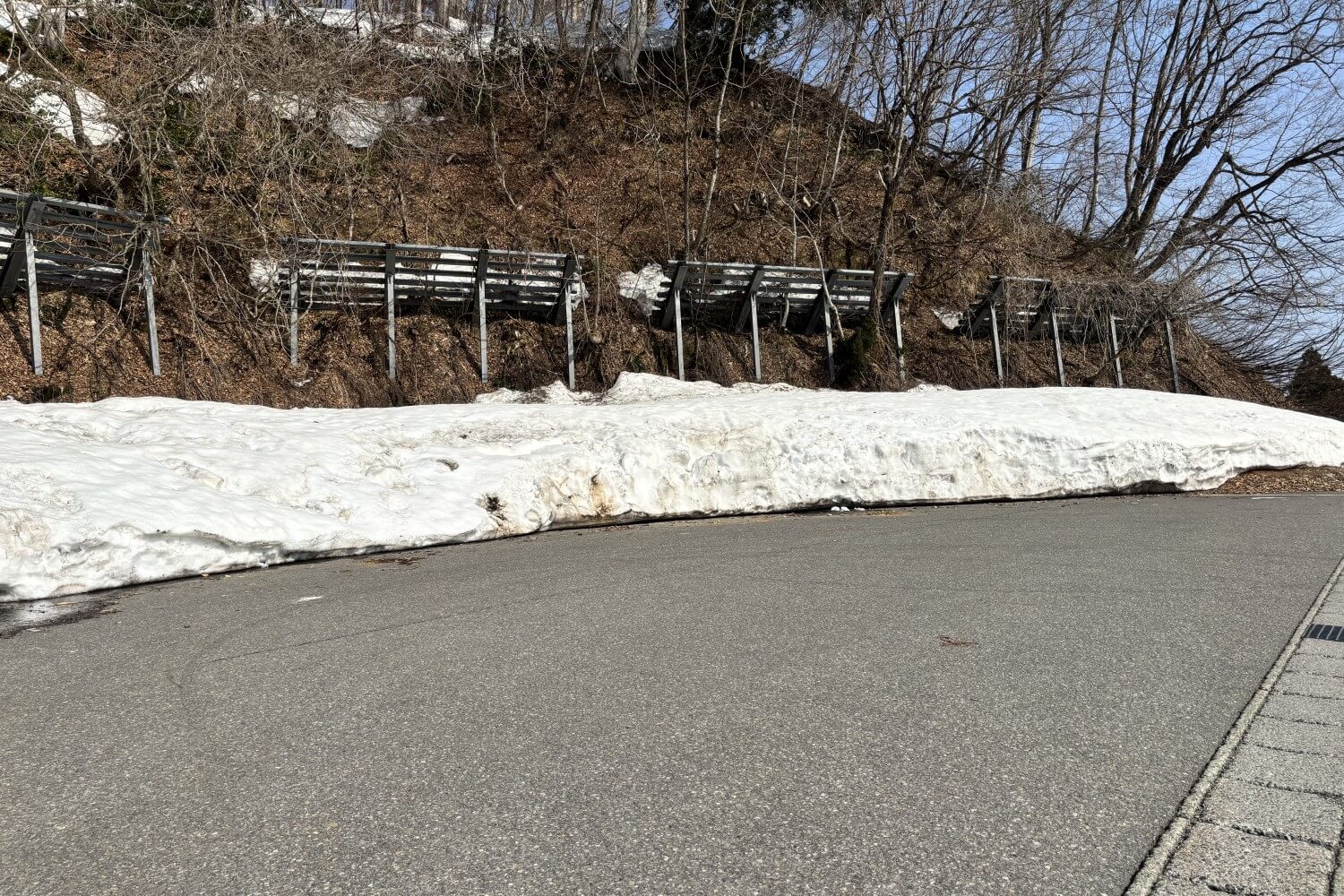 農地であるこの棚田付近は、農作業に合わせ除雪作業がされるので、展望台の200メートルほど手前で除雪が終わっています。