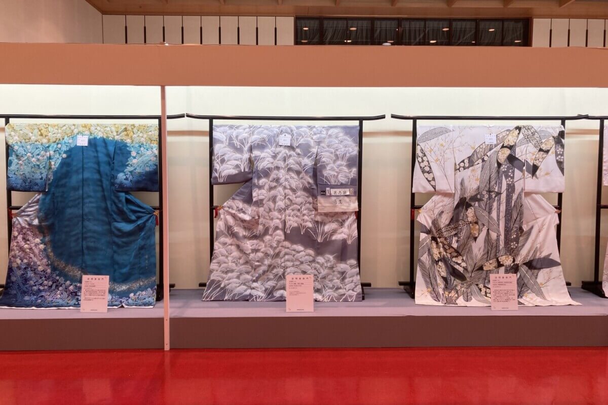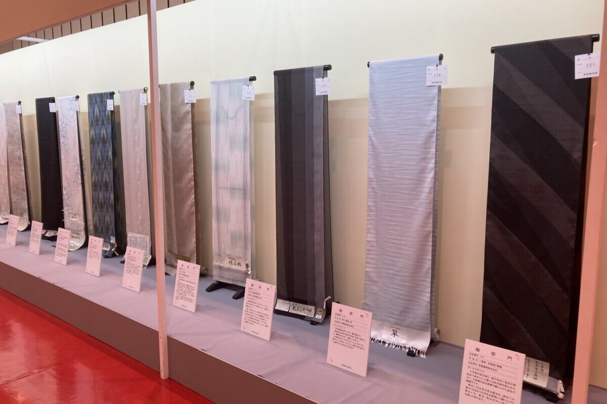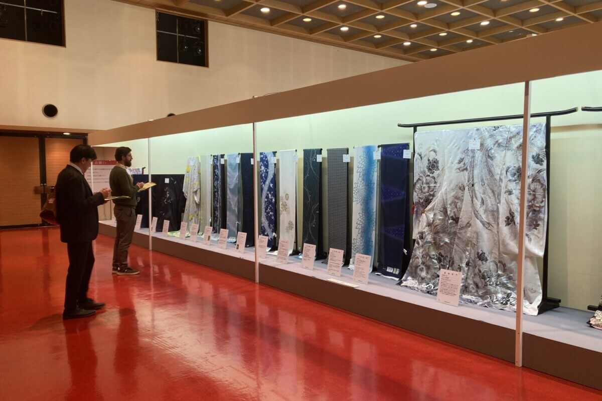 実はこの「十日町きものフェスタ」、全国有数のきもの総合産地として大正時代から100年続くイベント。十日町産地の幅広い商品群、「振袖」「留袖」「訪問着」「紬絣」「付下・着尺・羽織・コート」「帯」の6部門(総点数100点ほど)を審査し、最高賞の経済産業大臣賞、そのほか部門ごとの優秀賞が競われます。