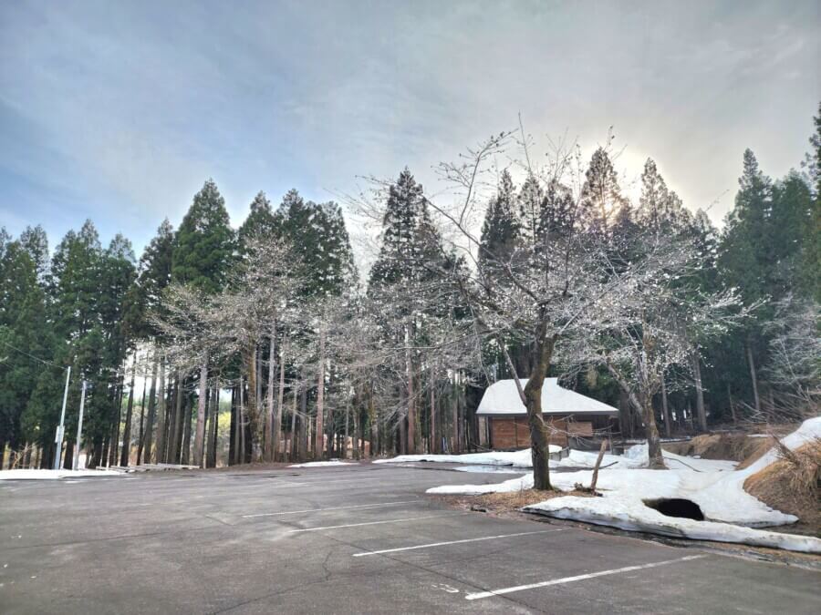 道端に残雪はありますが、道路上や駐車場には雪がなく、夏タイヤでも安全にたどり着くことができました!