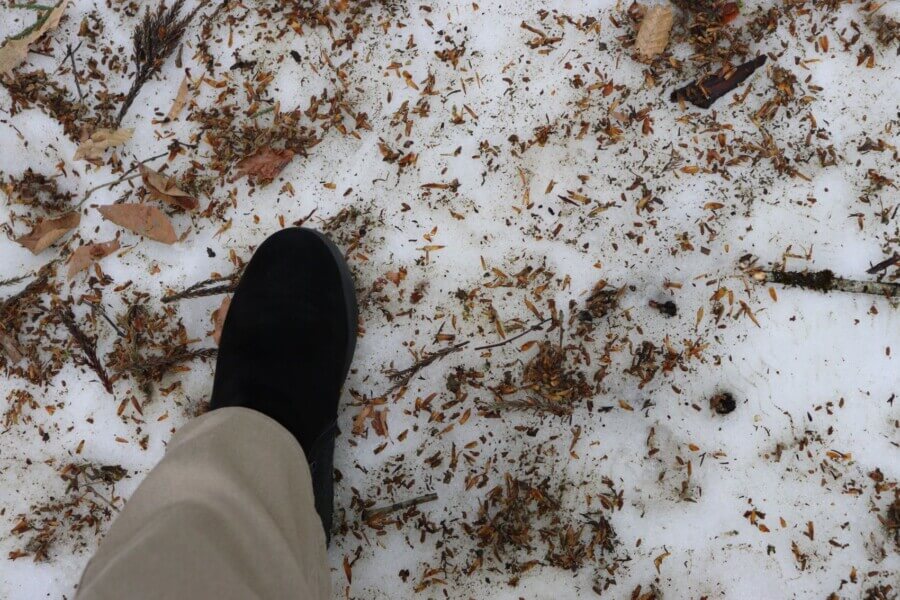 杉の葉も積もっています。滑らないようご注意!