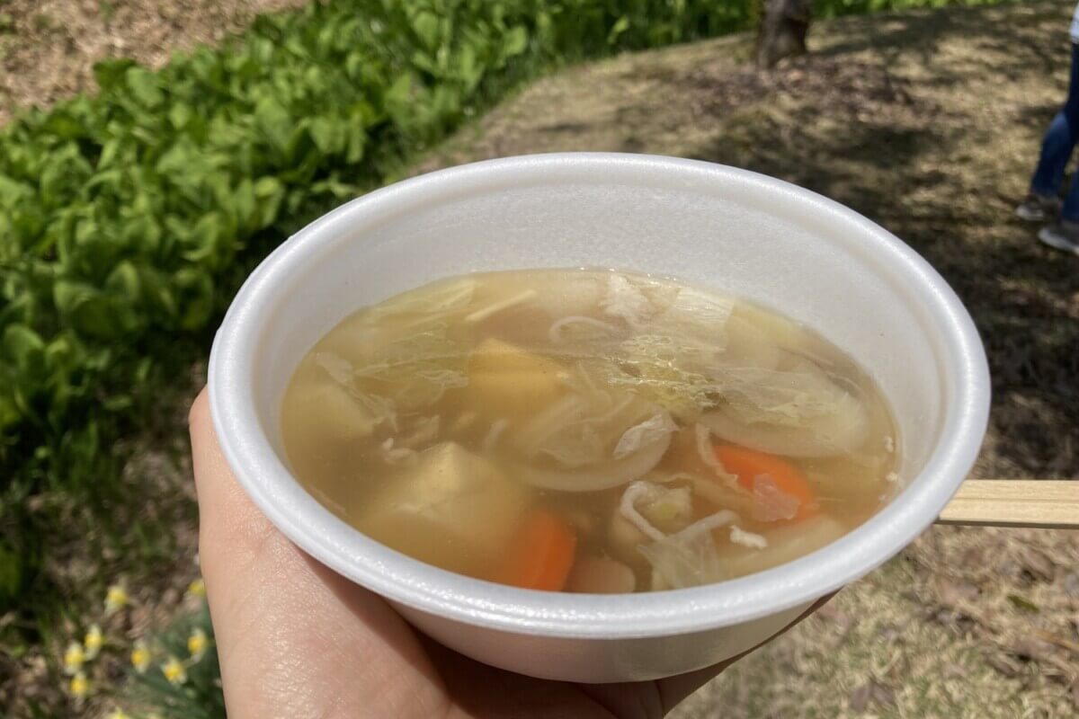 水ばしょう汁(豚汁)のふるまいも。新緑のなか中でいただく具だくさんの豚汁はとても美味しかったです。