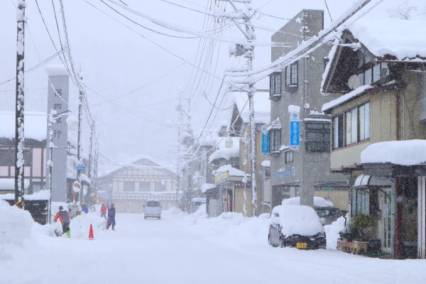流雪溝に雪を流す時間が指定されているので、総出で除雪作業を行います。