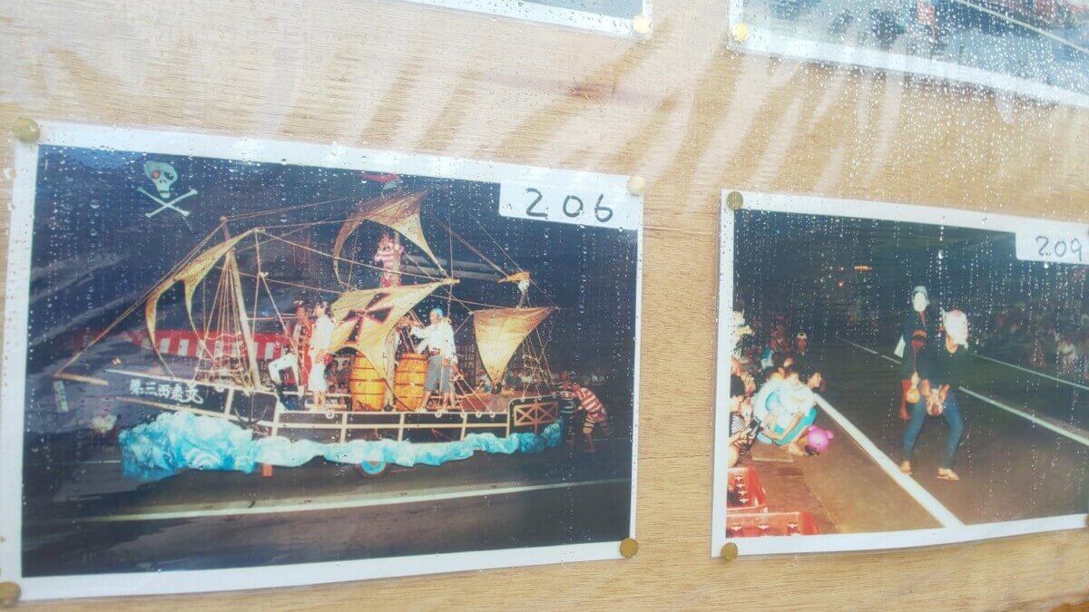展示しているのは、昭和58年~61年と令和元年の仮装大会の様子。