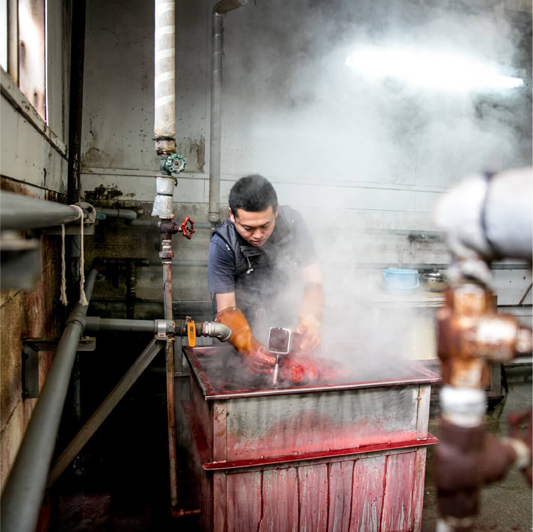 力強く燃える「焔」とも、「水の流れ」や「波」ともとれるデザインが、作者の息づかいを感じさせます