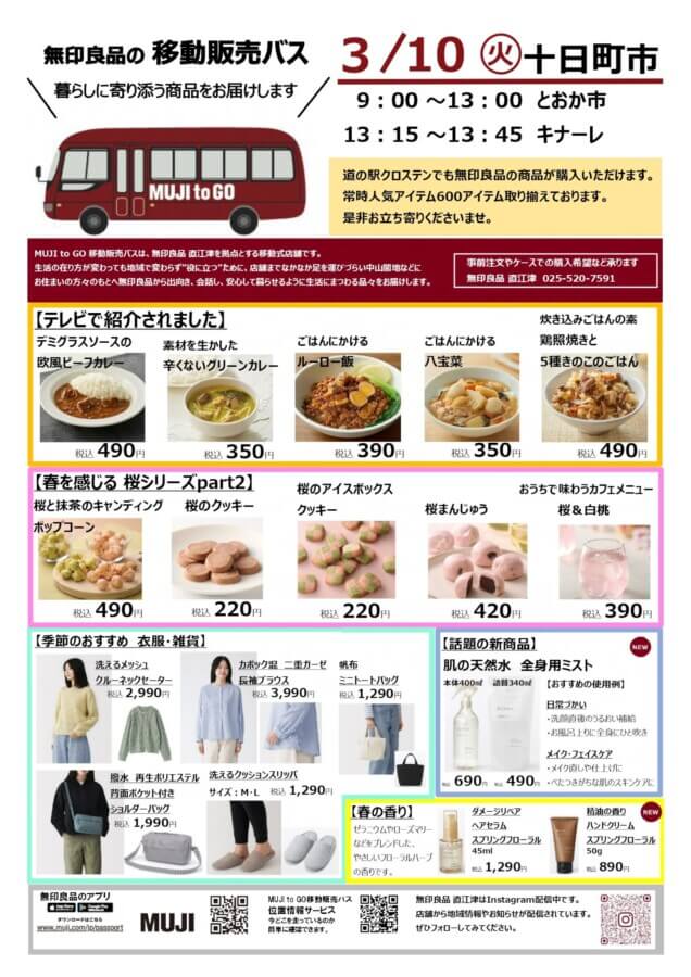 | 問い合わせ先 | 無印良品直江津 移動販売バス担当者 |