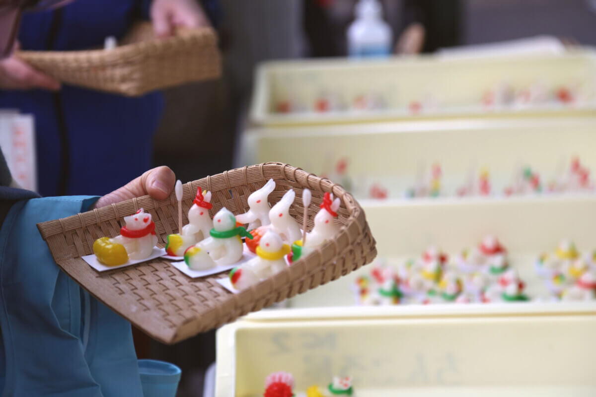 節季市…農家の人々が、主に冬期間の副業として竹やわら等で作った生活用品、民芸品を持ち寄って始めた市場に由来の節季市。犬や十二支を型どった小さなしんこ細工の「チンコロ」が人気で、別名「チンコロ市」とも呼ばれています。